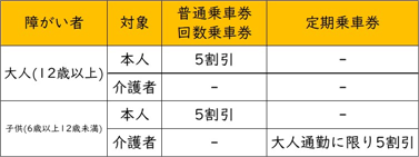 JR旅客運賃割引(第一種身体・第一種知的(療育手帳))
